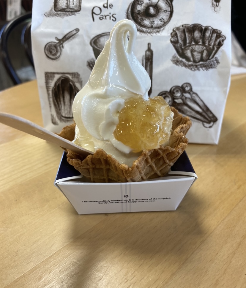 ソフトクリームにハチの巣です!
